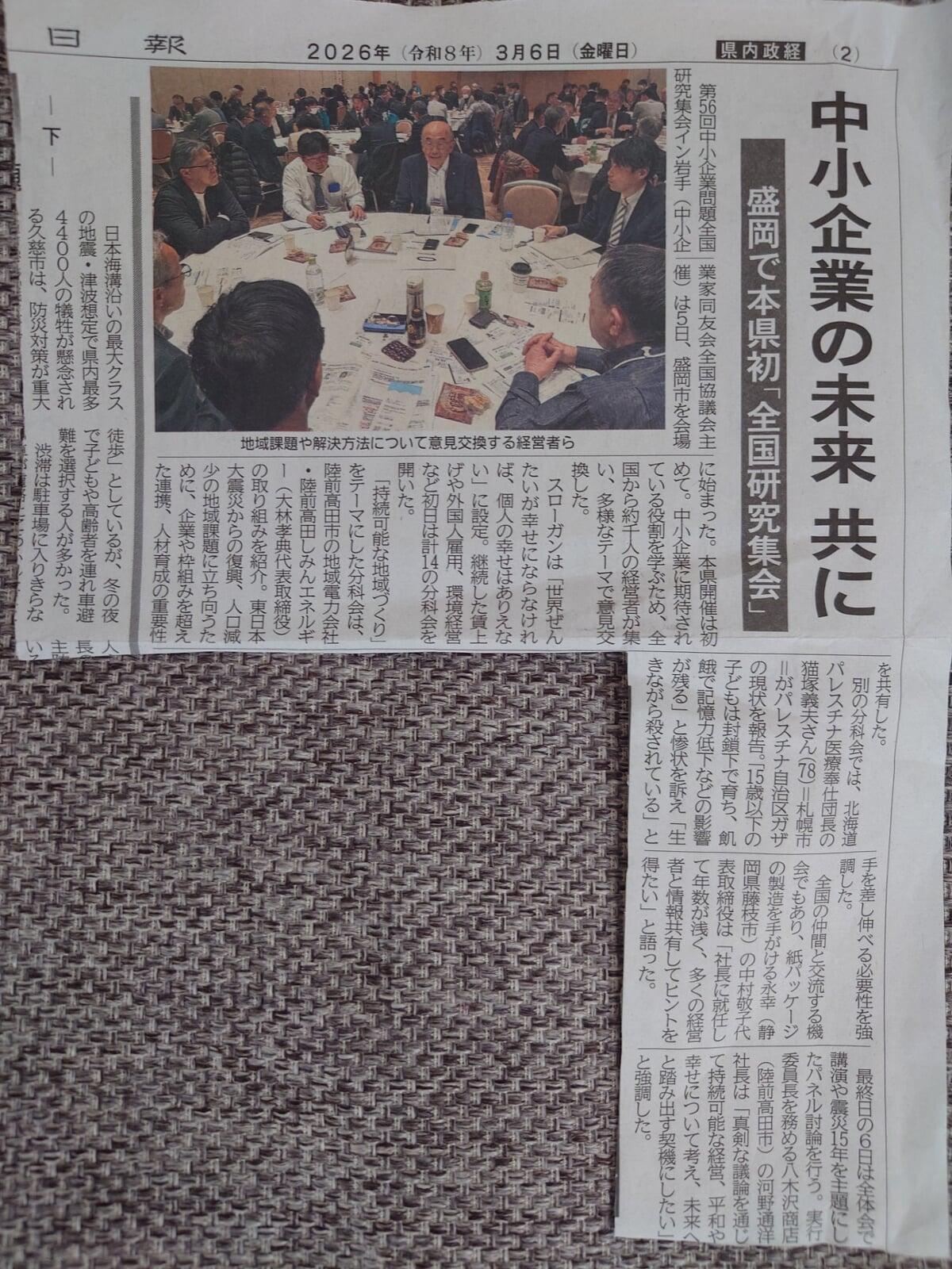 2026年3月5日、6日 岩手県で開催された第56回中小企業問題全国研究集会に参加しました。